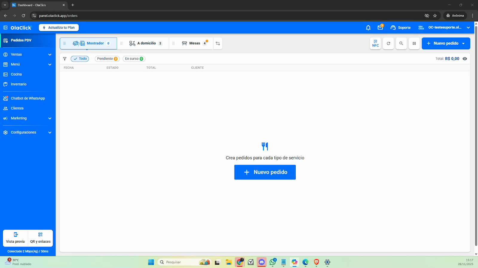 Paso 1: Ingresa a OlaClick y selecciona el menú Configuraciones.
