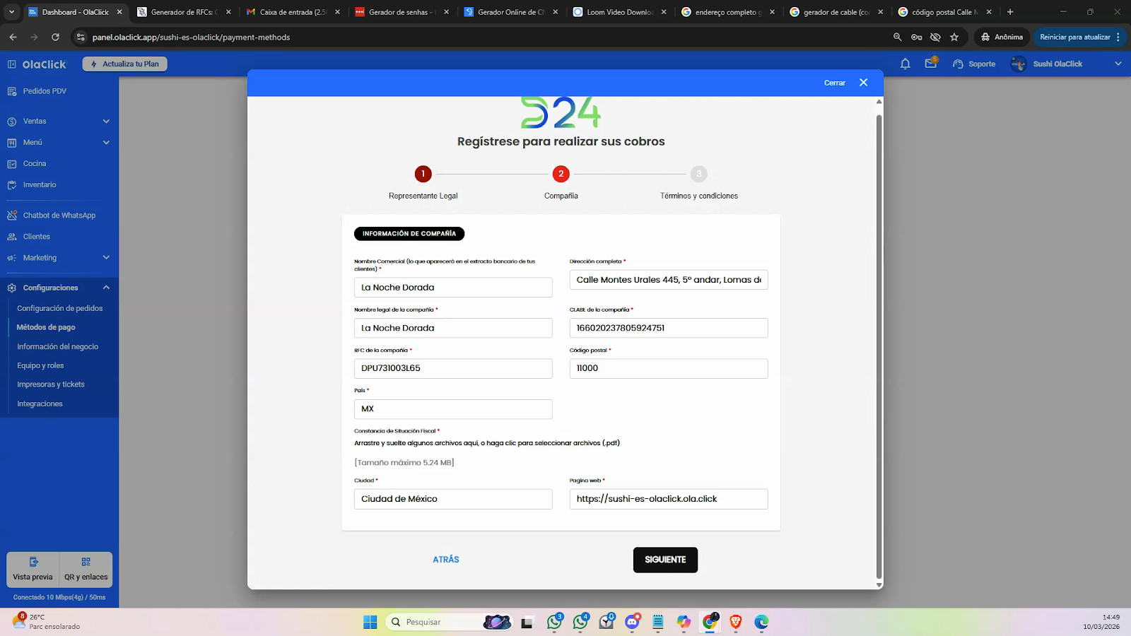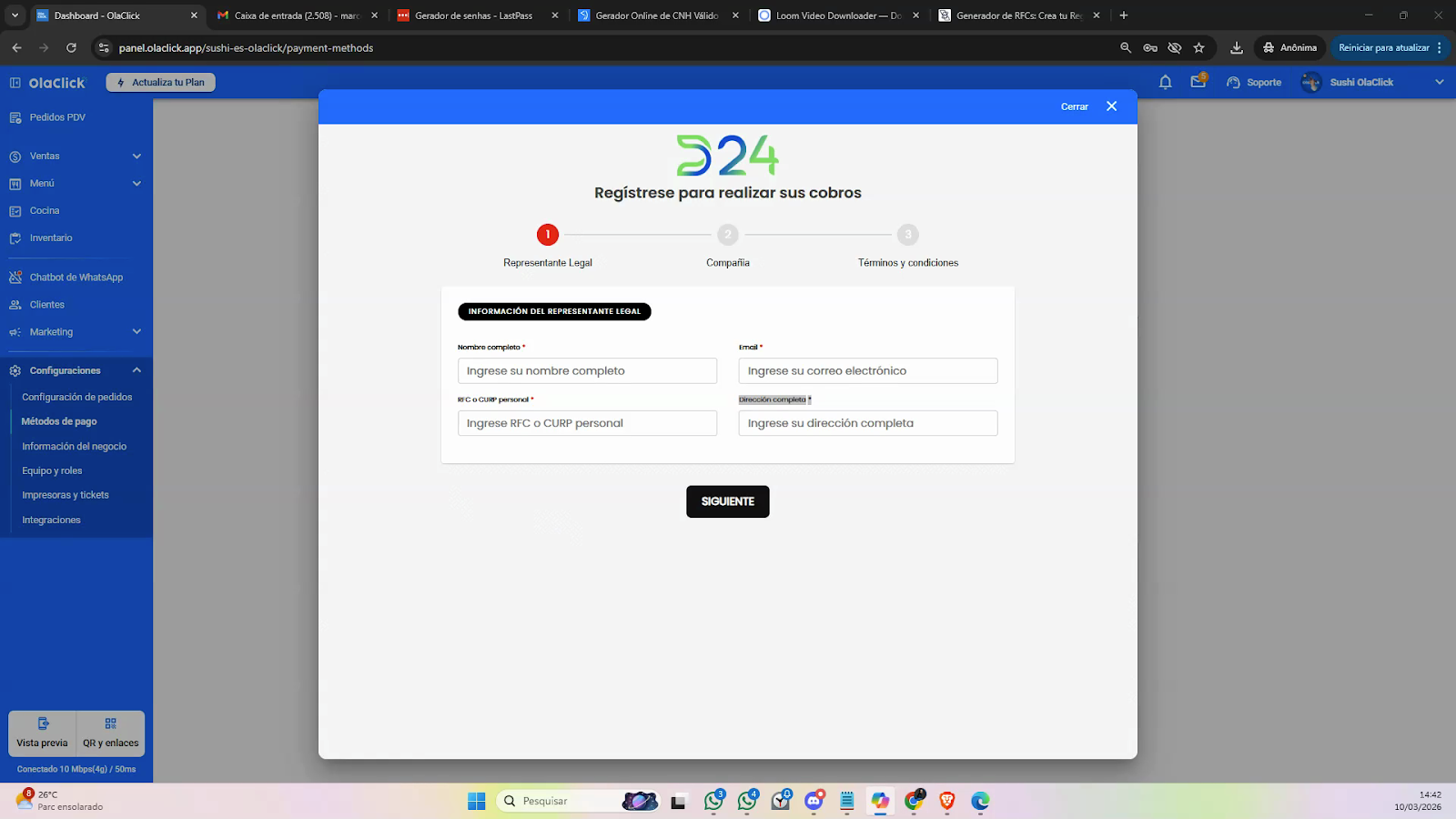 Completa todos los campos obligatorios: correo electrónico, RFC y los datos de tu empresa.