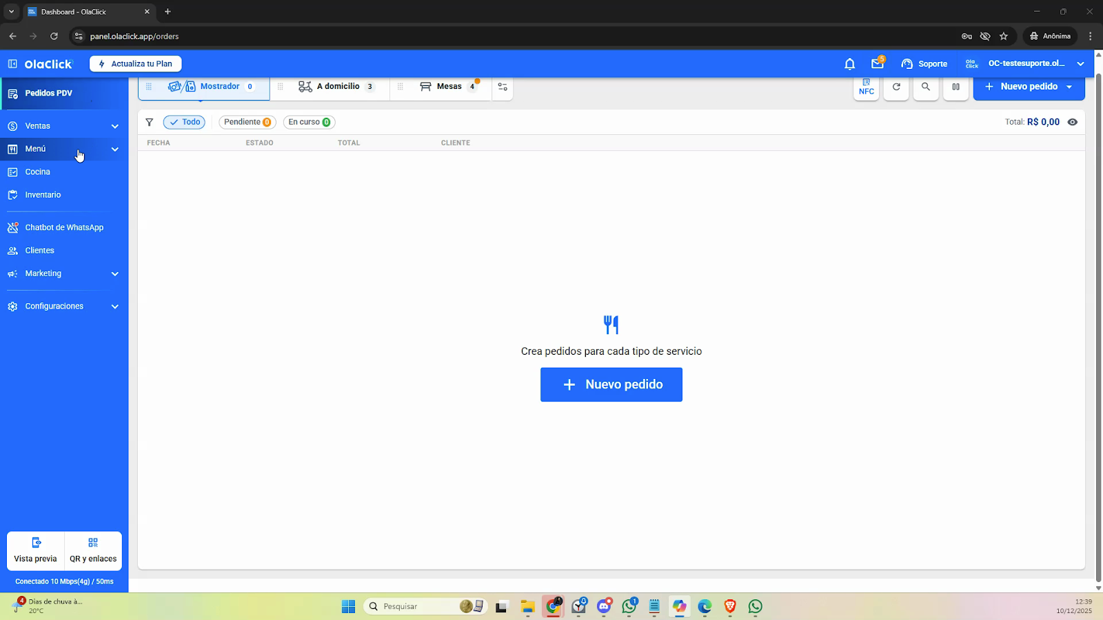 Paso 1: Inicia sesión en tu cuenta y haz clic en Cardápio.