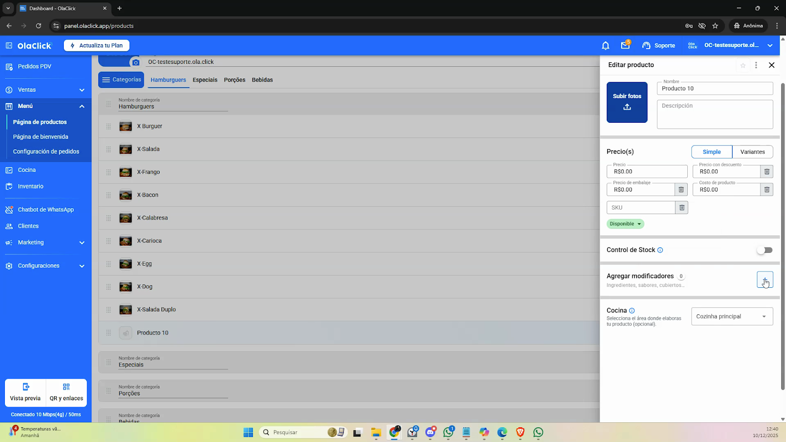 Paso 9: Añade un modificador si tu producto lo necesita (por ejemplo, elegir ingredientes extras). Puedes crear un modificador nuevo o asociar uno existente.