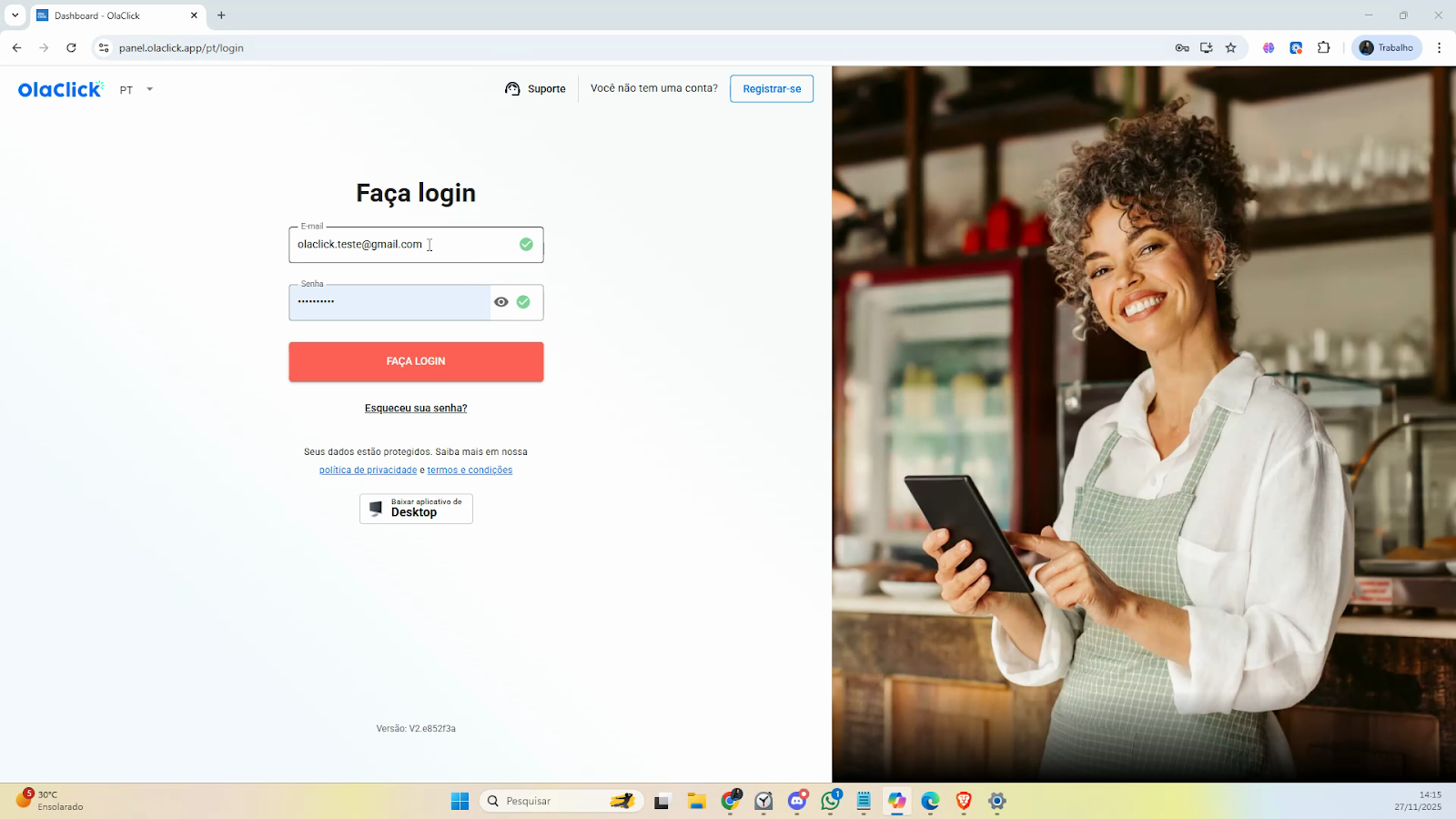 Passo 1: Acesse o painel da Olaclick pelo link indicado.