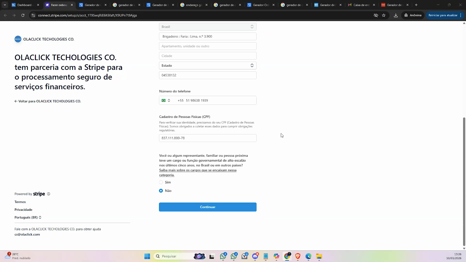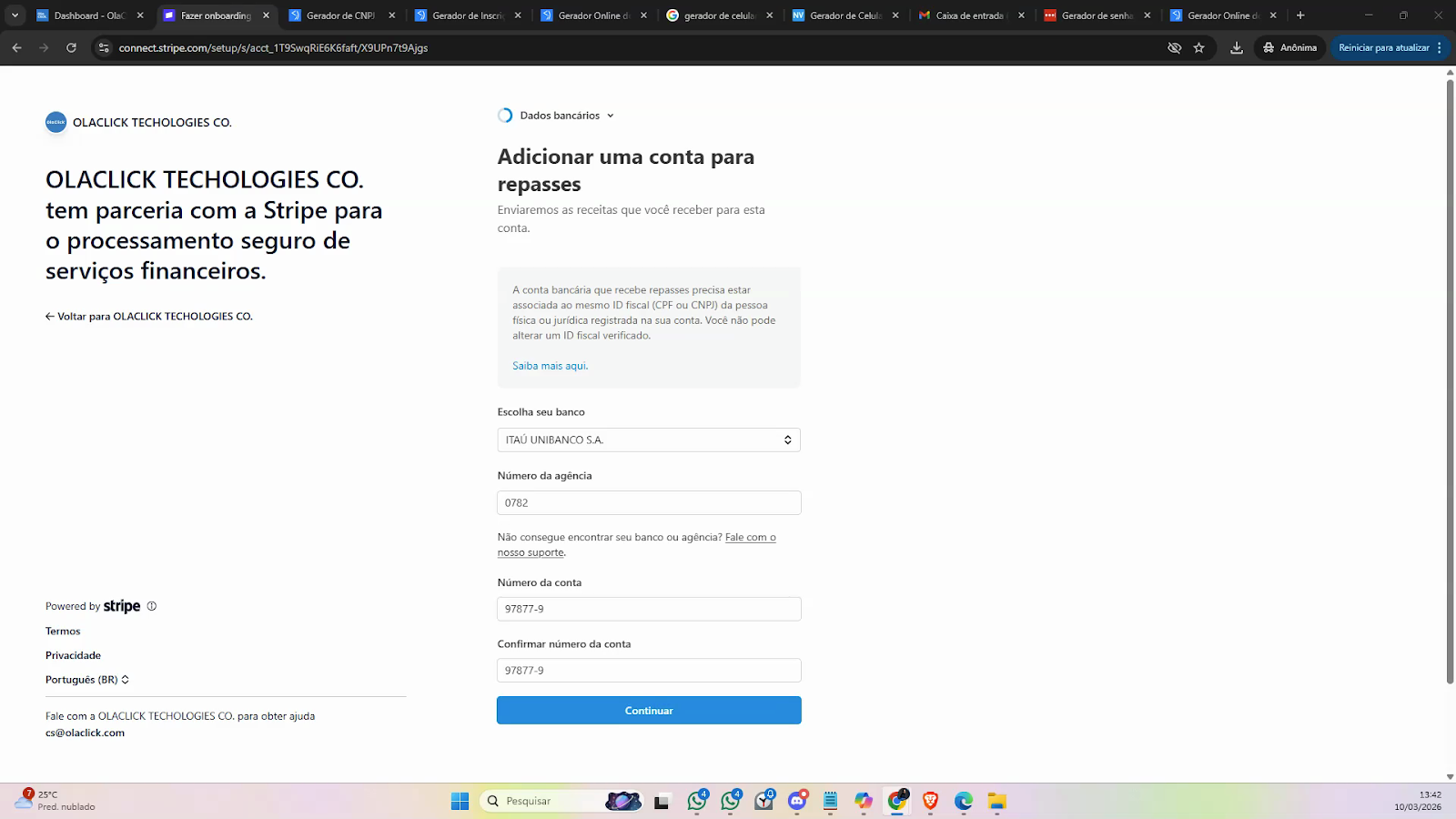 Preencha os campos e clique em Continuar.