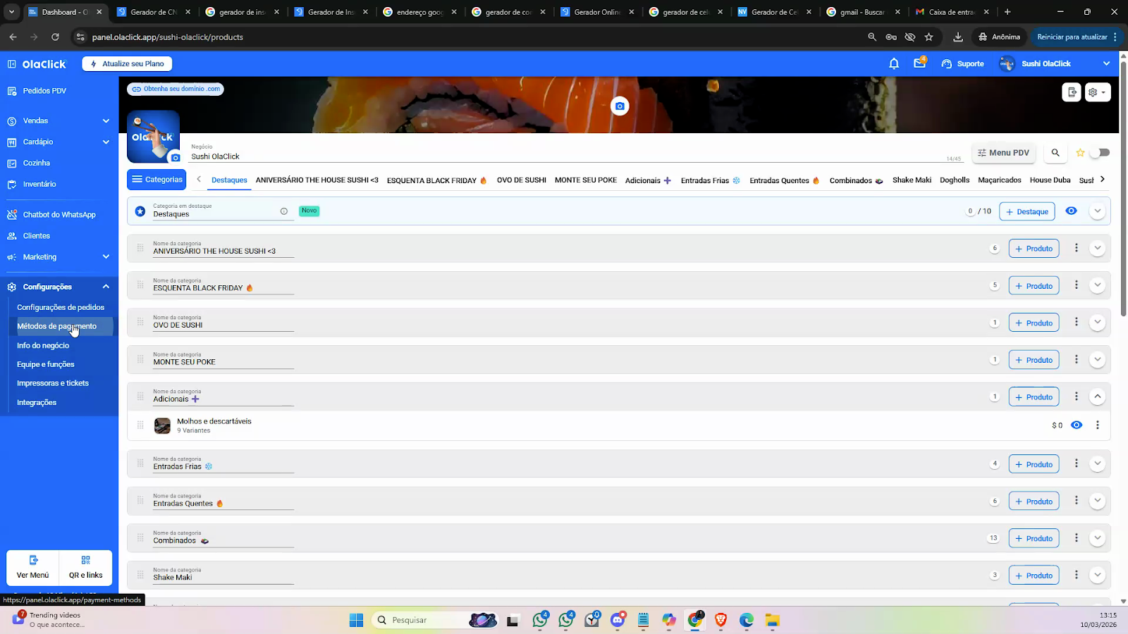 Clique em Métodos de pagamento.