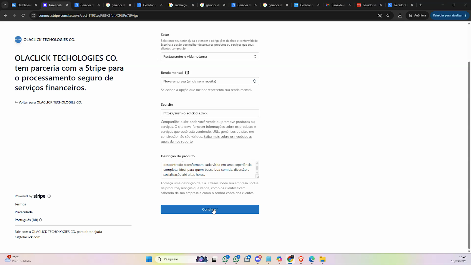 Preencha os dados da empresa, clique em Continuar após finalizar.